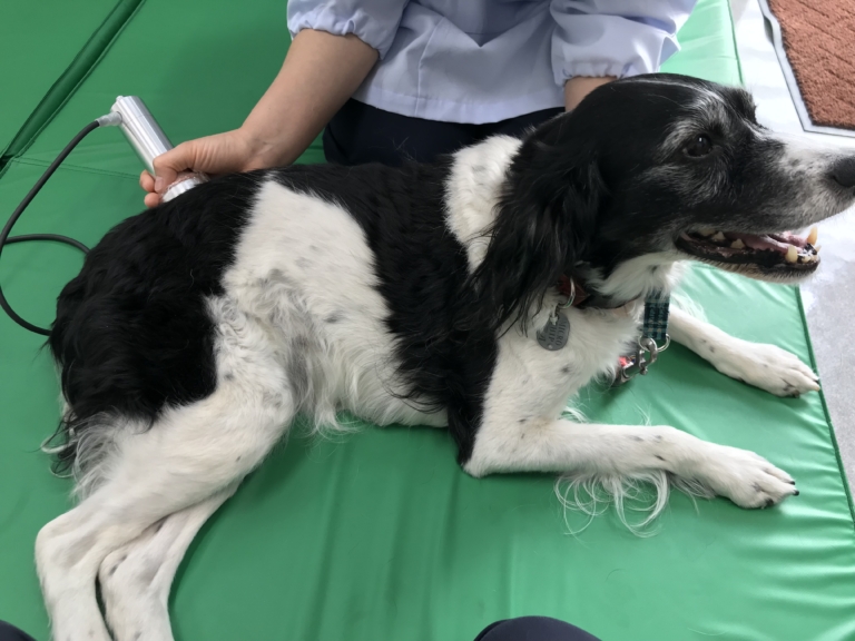 Y家のブリタニー・スパニエルの紅緒さんと出会ったのは、去年の8月、栃木県益子町にある伏見動物病院のリハビリ専門外来でのことでした。