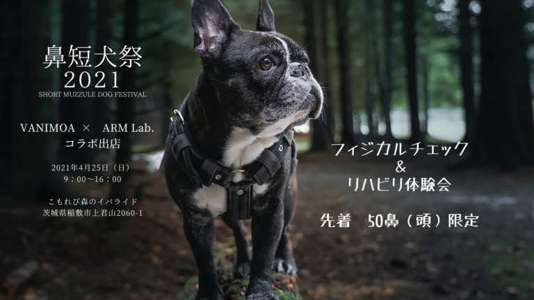 2021年4月25日(日)に、茨城県稲敷市にある”こもれび森のイバライド”にて開催される鼻短犬祭(はなたんけんまつり)に、出店が決まりました!動物リハビリテーション医療研究所の初イベント参加です!今回は、VANIMOAさんに共催させていただくことになりました。運動器のフィジカルチェックとリハビリ(徒手療法、物理療法、自宅エクササイズ指導など)体験ができるブースを設営します!お楽しみに!
